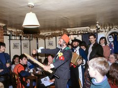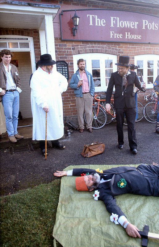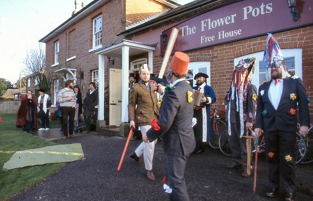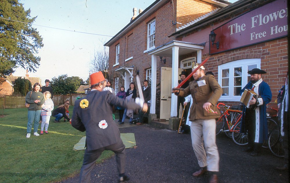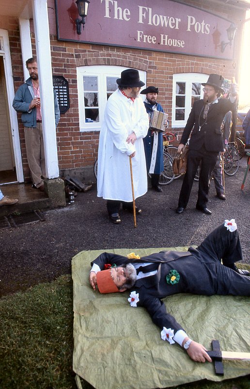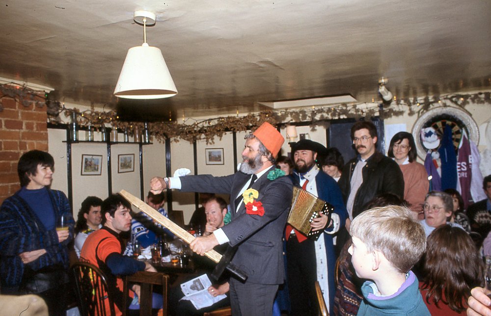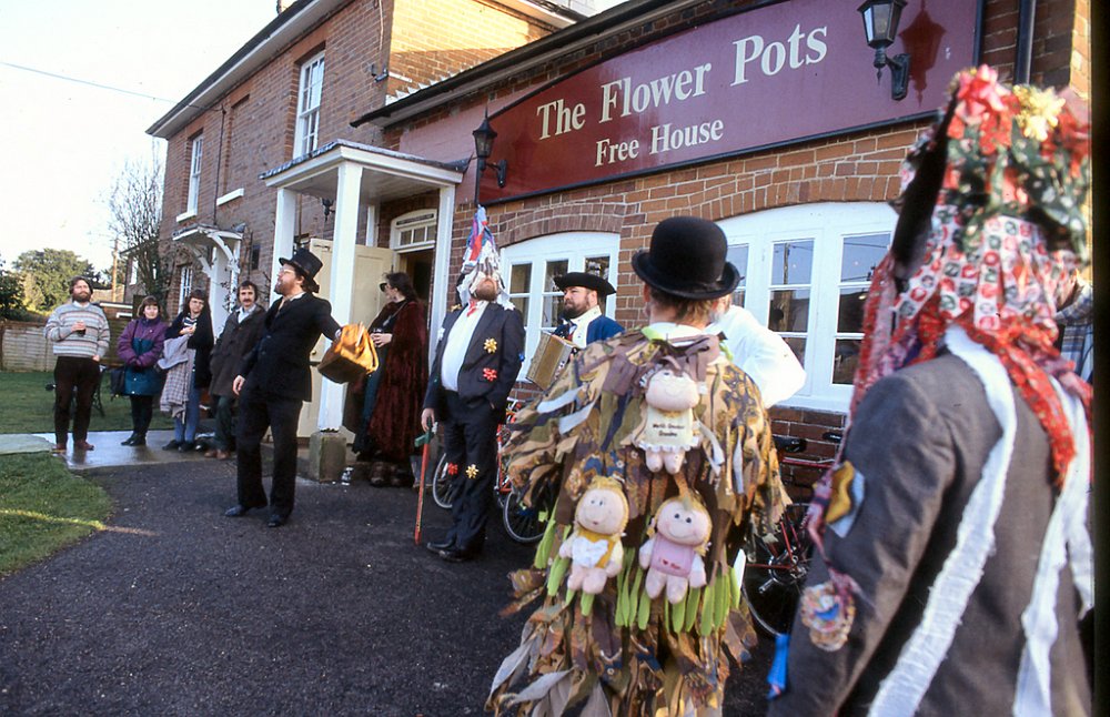 Mummers are travelling players who perform for donations at local pubs or events. Here they are performing at The Flowerpots.